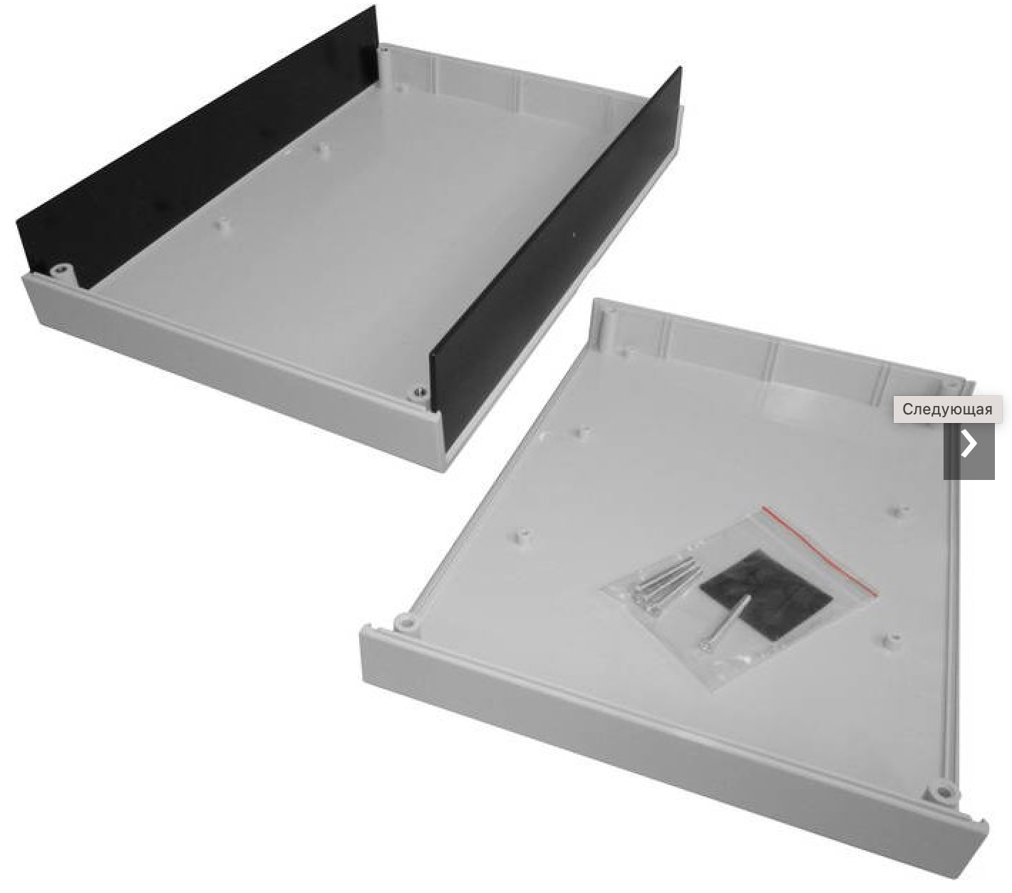 На внутренней поверхности корпуса отлиты стойки для горизонтального и направляющие для вертикального размещения печатных плат.размещение печатных плат горизонтальное и вертикальное 245х175х50мм