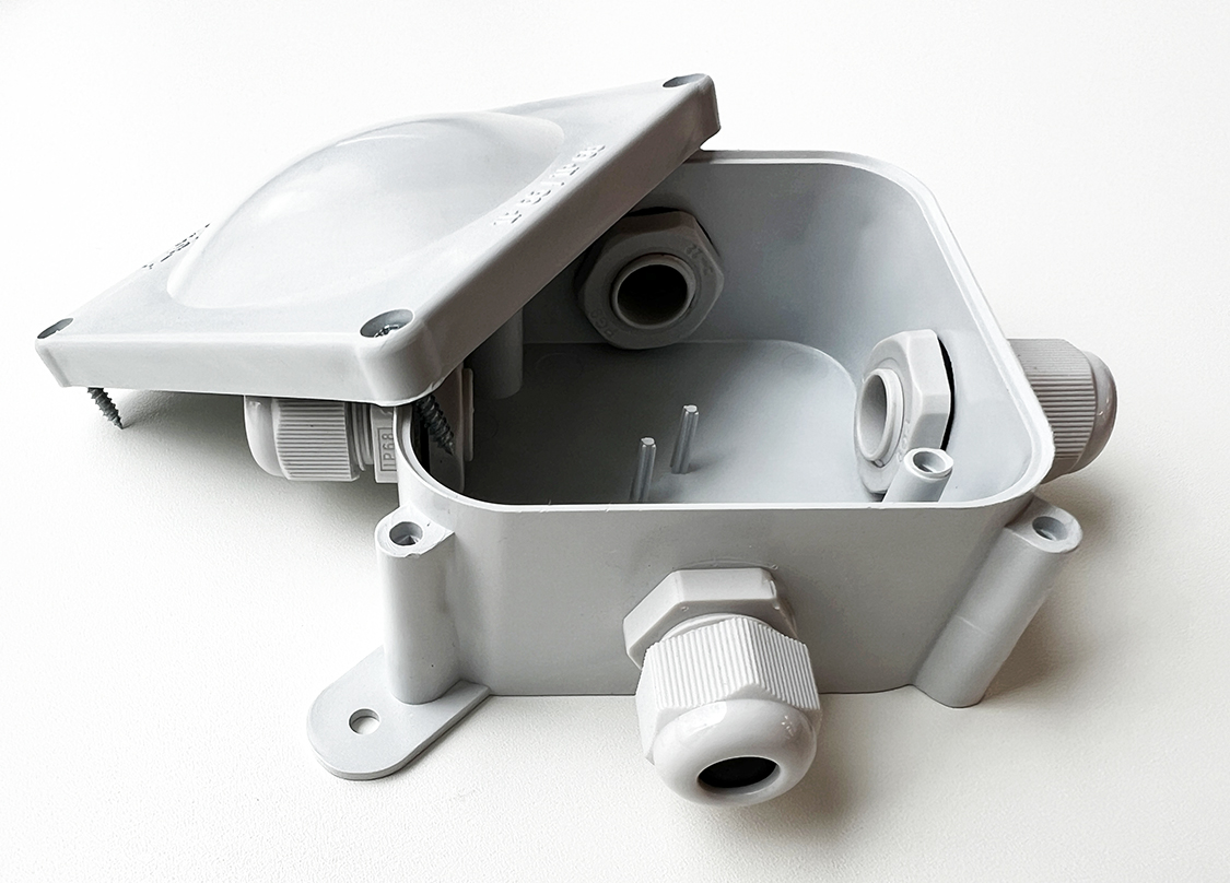 - Эргономичный компактный корпус из серого АБС пластика оснащен специальными креплениями, позволяющими осуществить монтаж коробки без нарушения контура герметичности.