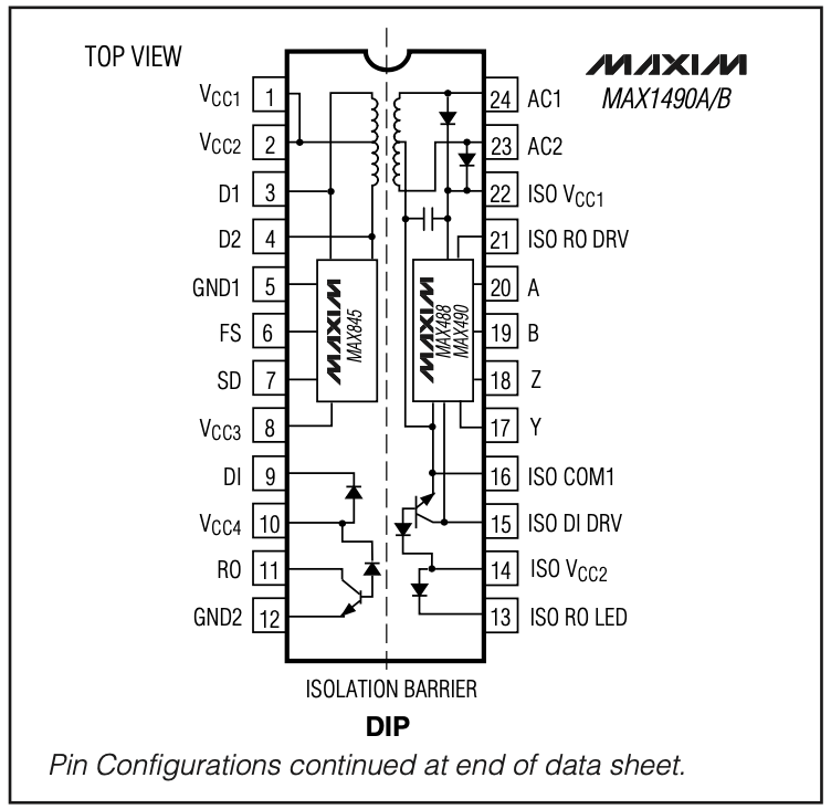 —MAX1490BEPG+ RS-422/RS-485 DIP24
