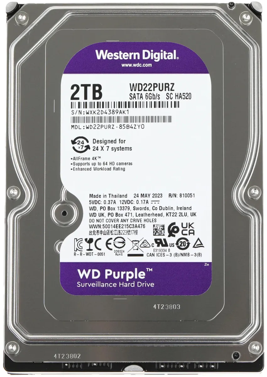 WD22PURZ, 2ТБ, HDD, SATA III, 3.5